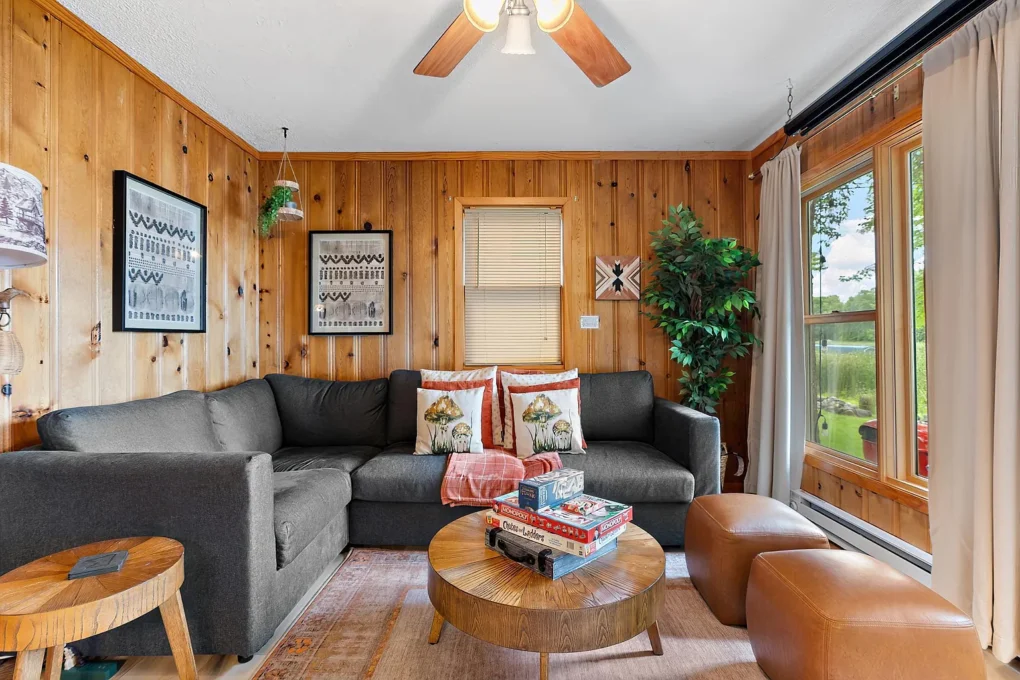 Welcome to the Pelican Bay Cabin. Located only 45 minutes from the Twin Cities in the Chisago Lakes Area & situated on a quiet bay on South Center Lake. It’s the perfect getaway only minutes from quaint, downtown Lindstrom, Taylor’s Fall and St. Croix Falls, Trollhaugen & Wild Mountain Ski Resorts, wineries, restaurants, cafes and more. Currently being used as a short term rental, this home is the perfect fit for someone who wants a lake cabin within driving distance to the Twin Cities, or an investment property or if you just want a manageable lake home with city water and sewer. Numerous updates and Northwoods character with: built-ins, solid six panel doors, large picture window overlooking the lake, walkout to the deck and lakeshore. Easily manageable two bedroom, one bath home with numerous recent updates. New flooring, painting, landscaping within last year, along with previous owner updates. The previous owner records show the roof, windows and siding all replaced, along with a new maintenance free deck, a new 2 car garage in 2020, paver driveway 2019, new furnace in 2021(home also has supplemental baseboard heat), laundry installed and the kitchen was remodeled in 2013.
