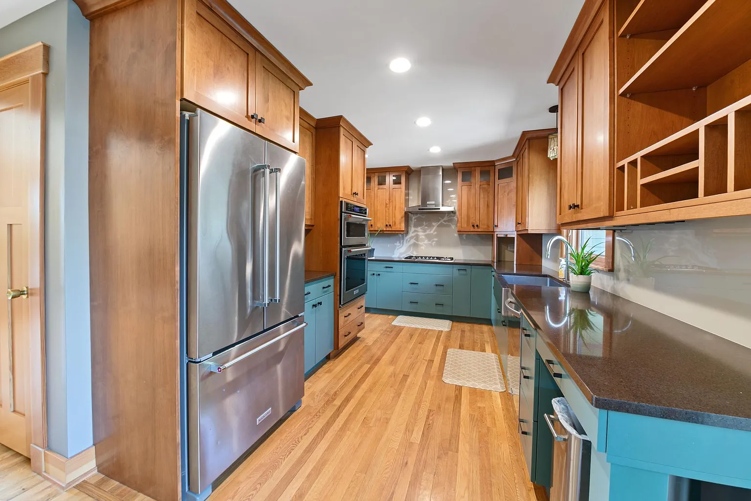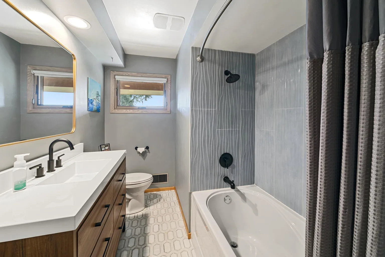 This stunning property combines modern comfort with mid-century classic charm. Walk up to the decorative brick and cement board home with a flagstone patio and a classic front porch to sit and enjoy the evenings. As you enter the front foyer, you will feel the mid-century characteristics of brick and hardwood along with some tasteful updates throughout. Featuring three spacious bedrooms, three baths, and an open-concept layout ideal for both entertaining and everyday living. Enjoy the warmth of hardwood floors, a chef’s kitchen with stainless steel appliances, granite counters, gas stove top, convection oven, custom cabinets and more. The main level includes the living room, kitchen, dining area, two bedrooms and a full bath. The upper level boasts the large primary ensuite. The lower level has an office area, large flex room, fireplace and a 3/4bath along with ample storage space. Abundant natural light pouring through oversized windows and a walkout dining area to a fully fenced private backyard including a large two tiered deck. Don’t miss the oversized, 20×36, two car garage. Located just minutes from downtown Minneapolis, this prime Golden Valley location offers the perfect blend of suburban tranquility and urban convenience. Nearby Gearty Park and Briarwood Nature Area are perfect for walking and biking along with Theodore Wirth Park only a short distance away. Quick access to shopping and dining, more than a home—it’s a lifestyle. Whether you’re hosting gatherings on the large deck or unwinding in the cozy living room, this property is ready to welcome you home.